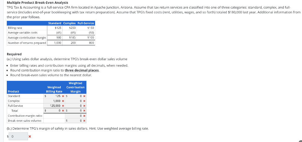 Solved Multiple Product Break Even Analysis Tpg Tax Chegg Com